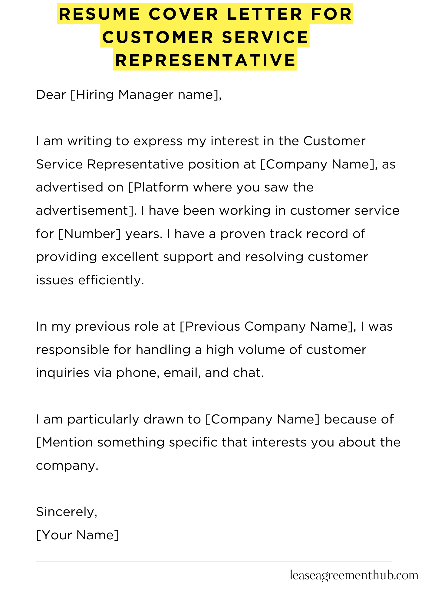 A resume cover letter for a customer service representative is a document. It highlights your skills and experience. It’s sent with your resume when applying for a job. Its purpose is to grab the hiring manager’s attention. It shows why you’re a great fit for the role.