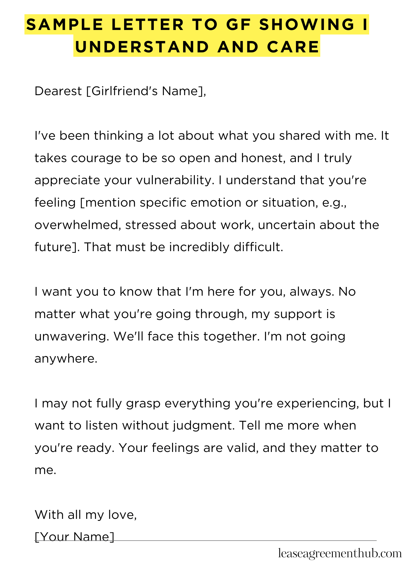 A sample letter shows you care. It helps you express understanding to your girlfriend. It’s a helpful guide.