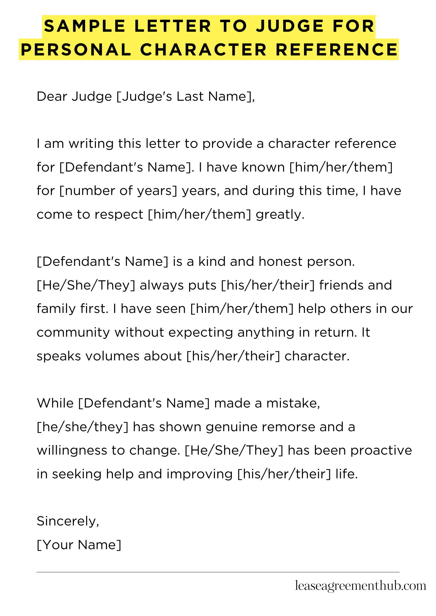 In your conclusion, summarize your key points succinctly. Reinforce your belief in the individual’s character and potential for positive change. Politely implore the judge to consider your perspective when making their decision. End the letter with a formal closing, such as “Sincerely,” followed by your name and signature.
