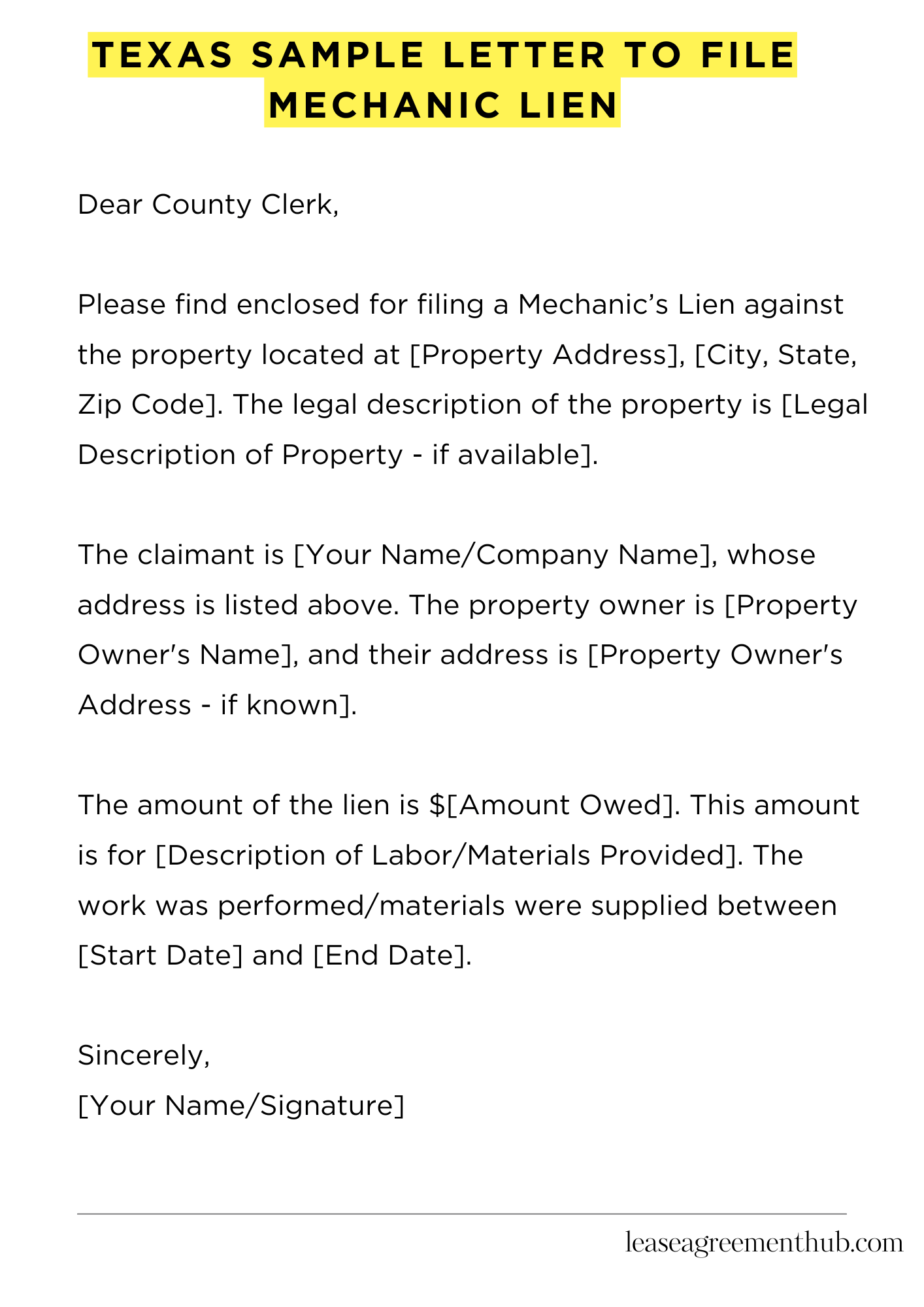 Frequently Asked Questions: Texas Sample Letter To File Mechanic Lien